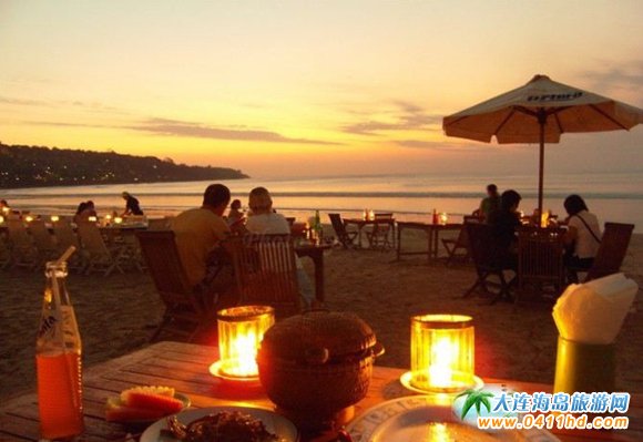 這里是全球十大最美落日之一的金巴蘭海灘,既有夕陽的美景,又有美味的海鮮燒烤。每天夕陽西下的時候,海邊餐廳的沙灘上便擺滿了餐桌,大家圍坐在沙灘上,一邊享受美味的海鮮燭光晚餐,一邊欣賞海邊壯麗的日落美景,旁邊機場起降的航班劃過火紅的天空,更是其他地方看不到的景象。