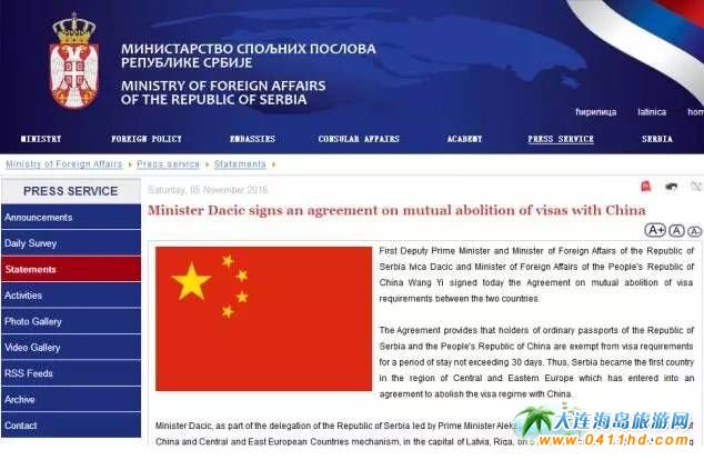 第一個和中國取消了簽證制度的中歐及東歐國家”。