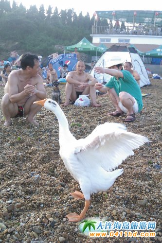 大連傅家莊浴場(chǎng)區(qū)迎來(lái)鵝"明星"
