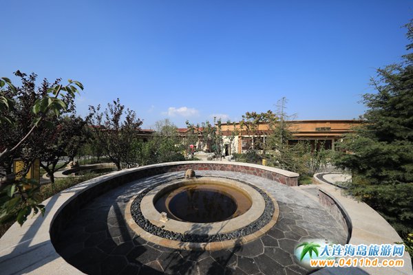 室外溫泉區由芳香園、百草園、養生區、奇石區組成,由67個功能不一、各具特色的溫泉泡池構成,總面積2萬余平,以福命泉和祿運泉為點睛之泉,福命與祿運相依相連,沐浴此泉洗去身上的垢穢,可得福運降臨。泡池間的相互作用可起到增強免疫力,舒緩壓力,鎮定安撫、祛勞助眠、消炎殺菌、理氣止痛等功效。在環境上善用自然“真”山水,營造生態、自然、綠色環境;各泉之間以木質小橋連接,鵝卵石搭成的人工水渠,營造出山澗清泉的意境。