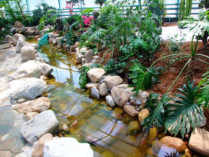 走進旅順蝴蝶園中的蝶戀花區,盡管是在室內,但宛若走進了一處南國風情的鄉間小隅,潺潺的流水,彎彎的小橋,石頭鋪就的小路,還有翠綠的葉,嬌艷的花,舞動的蝶,更有在水中游動的紅鯉,這就是大師筆下的一副彩色山水圖。