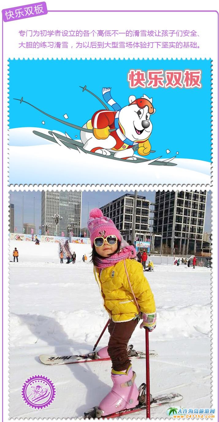 專門為初學(xué)滑雪者設(shè)立的各個高低不一的滑雪坡讓孩子們安全、大膽的練習(xí)滑雪,為以后到大型雪場體驗打下堅實的基礎(chǔ) 。
