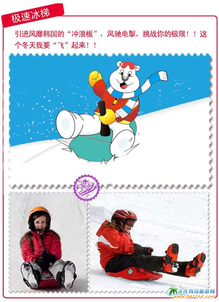 引進(jìn)美國和韓國今年最新的臥式?jīng)_雪車和坐勢沖雪板,體驗極速歡樂;