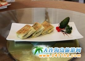 菜臍留 金州賓館的這道菜是金州老菜的特色主食之一,以小白菜為主料,調料主要為精鹽、醬油、味素、蔥姜、大蒜泥適當。具體制作方法為,小白菜摘凈洗好,加少許鹽生剁成餡,擠去水分備用。肉梭制碎,大蔥姜切成末。小白菜餡,肉梭加蔥姜末調成餡不加油,調成咸鮮口。混合面制成25個劑子,搟成圓餅,慢慢地把餡心包進,攢成圓圓的團子俗稱臍留,上屜旺火蒸8分鐘即成。其特點是清、鮮、香。