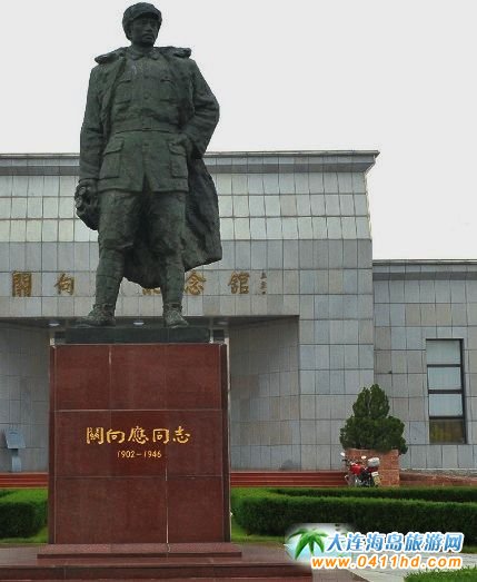 關向應紀念館位于金州新區向應街道大關村。紀念館建筑宏偉、莊嚴肅穆, 大理石鋪設的地面,整潔平坦。四周鮮花簇擁,松柏蒼翠。由前人大副委員長王震同志題寫的“關向應紀念館”六個金色大字,在陽光照耀下熠熠生輝。展館正前方矗立著一尊關向應雕像,將軍一身戎裝,目光凝視遠方,似在指揮著千軍萬馬。聽工作人員介紹, 景區內除了紀念館、關向應故居外,在展館西面,還有延安窯洞、紅三軍指揮所、滿族風情院、戰友情雕塑和新增建的關向應衣冠冢。