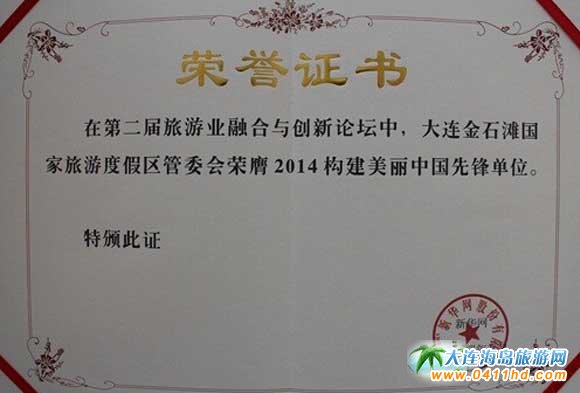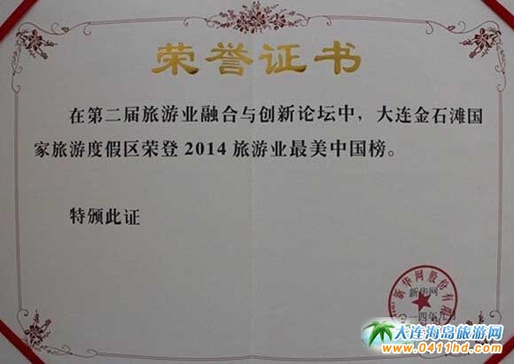 9月13日,第二屆旅游業(yè)融合與創(chuàng)新論壇暨2014最美中國榜發(fā)布會在北京舉行。大連金石灘國家旅游度假區(qū)榮登2014旅游業(yè)最美中國榜;被評為最美中國生態(tài)旅游、人文(休閑)旅游目的地景區(qū)。大連金石灘國家旅游度假區(qū)管委會榮膺2014構(gòu)建最美中國先鋒單位。