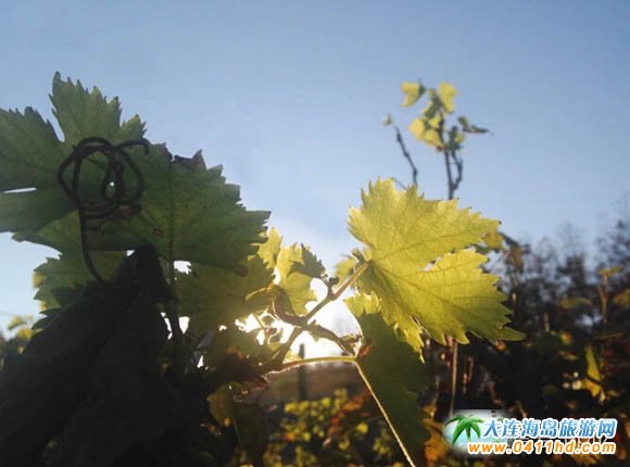 今天的陽光很好,在陽光下閃爍的葡萄葉子