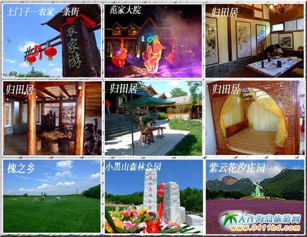 青銅時代墓葬遺址——大、小石棚,全國4A級旅游景區、百家紅色經典景區——關向應紀念館,中國北方最大的薰衣草花田——紫云花汐莊園,大連首家田園休閑文化主題餐廳——歸田居,中國北方首家高級豪華休閑農莊——槐之鄉休閑莊園、農家特色美食——土門子農家一條街、大連“休閑農業第一莊”——富美莊園、以及小黑山森林公園,萬畝大櫻桃基地,藍莓莊園等各具特色的休閑農莊。