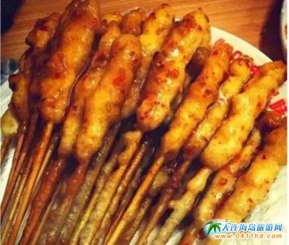 雞肉小串應該是大連人的回憶,目前在夜市還可吃到。無非是雞肉裹上面粉,口感很嫩,配上番茄醬顏色極好看。但承載著大連人叫童年的情懷,所以也非常受歡迎。