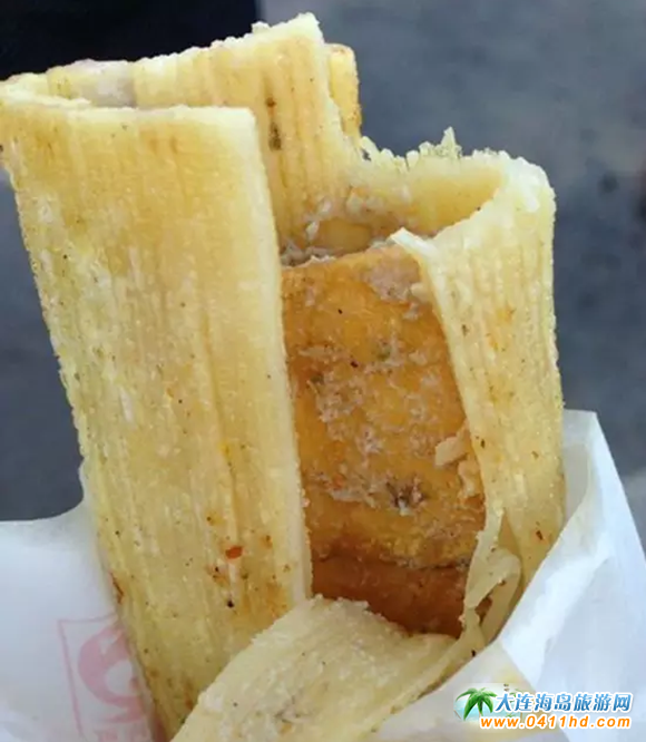豆皮兒可能是老大連人第二愛,大連中原夜市街就有一個非常出名的賣豆皮兒的老頭,還上了舌尖上的大連。8RMB豆皮兒加上倆撒尿牛丸,多加點湯,大冷天夜宵再好不過~