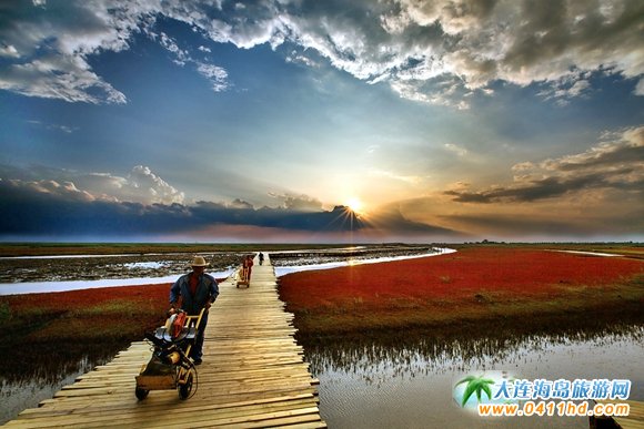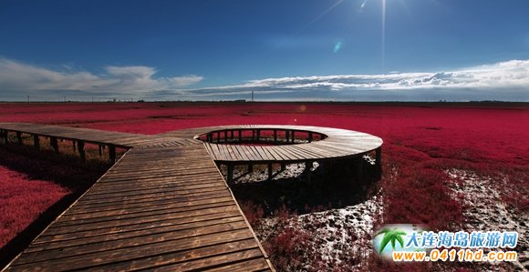 【向海同心】(約30分鐘 )沿著棧橋可以欣賞到遼河沿岸紅海灘的濃烈與激情。