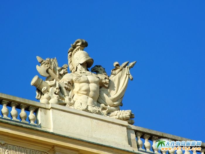 盡管在建筑風格上沒有給我們留下太多感觸,但是,那些裝飾于建筑上的雕塑卻展示出歐洲人的藝術修為,可以毫不夸張的說,這些或是安立于宮殿的房檐上或者鑲嵌于厚實的墻壁中的塑像,無一不是栩栩如生。每一個雕塑都是以人物為主,每一個雕塑人物都是惟妙惟肖,仿佛是真人站在那里,從雕塑的面部表情,到肢體動作,再細致到不同動作所表現出肌肉的力度以及面部表情,都刻畫的非常仔細。這些雕像或者拿著刀劍,或者持著盾牌,這些都將那個時代的戰爭環境表現出來。