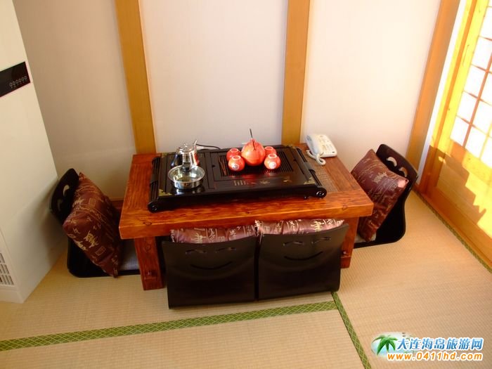 旅順香格里溫泉擁有有高檔純日式客房三十余間,所有客房均為復式上下層結構,樓下為會客室,樓上為榻榻米式客房。裝飾風格完全照搬日式格局,下榻這里猶如置身異域,所用家具擺設也以遵照日本民居習慣,環境色彩以暖色為基調,其豪華套房最為奢貴,雅致尊享,不僅配備完善,家具華貴,更有露天大臺可觀綠野山景,舒適溫馨實屬度假精品。旅順香格里溫泉客房圖片