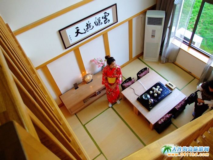 旅順香格里溫泉擁有有高檔純日式客房三十余間,所有客房均為復式上下層結構,樓下為會客室,樓上為榻榻米式客房。裝飾風格完全照搬日式格局,下榻這里猶如置身異域,所用家具擺設也以遵照日本民居習慣,環境色彩以暖色為基調,其豪華套房最為奢貴,雅致尊享,不僅配備完善,家具華貴,更有露天大臺可觀綠野山景,舒適溫馨實屬度假精品。旅順香格里溫泉客房圖片