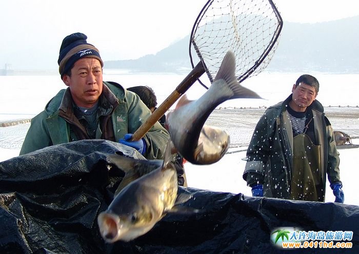 大連冬捕活動首次在高新園區龍王塘舉行,夏日中碧水蕩漾、煙波浩渺的龍王塘水庫在冬季又是一番銀裝素裹,冰原連天的景色,萬尾鮮魚躍冰而出場面壯觀收獲喜人!