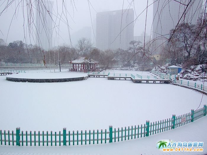 大連旅游圖片之瑞雪中的大連勞動公園滑雪場