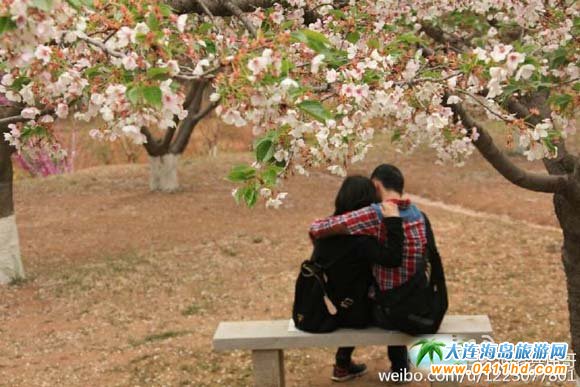 櫻花園為戀人們營造了表達愛慕的殿堂。一雙雙熱戀中的年輕人走進櫻花園似乎走進了兩人世界:手牽手肩并肩相互依偎著漫步在櫻花織成的林間小徑上,踩著散落滿地的粉白的花瓣,聆聽著櫻花搖曳的呢喃以及愛人甜蜜的私語……