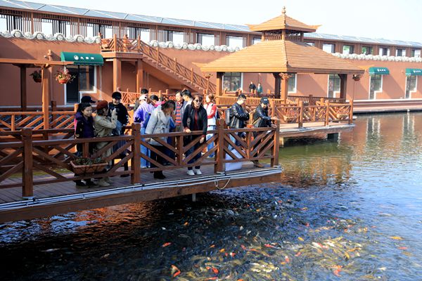 溫泉水上樂園占地面積15000㎡,可容納3000名游客同時(shí)游樂。采用庭院式裝修風(fēng)格,給人以蓬勃、延展、大氣的視覺感受,溫情愜意、舒適典雅。園內(nèi)設(shè)有多功能溫泉泡池、國際標(biāo)準(zhǔn)泳池、大型戲水滑梯、火龍?jiān) ⑻詺獗ぁ⒈拇病⑻厣蛷d等多種休閑娛樂項(xiàng)目,一票暢玩,老少皆宜,性價(jià)比超高。園區(qū)外建有大型觀賞魚塘,擁有各類觀賞鯉魚50000余尾,一把魚食撒下,即可欣賞到萬尾鯉魚跳躍爭食的壯觀景象。