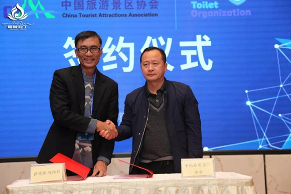 會上,世界廁所組織與中國旅游景區協會舉行了戰略簽約儀式,兩大組織未來將以全球的眼光和格局為“中國廁所革命”加速加力,在廁所文明宣傳、技術交流、平臺建設、品質提升等領域攜手合作,以中國旅游景區為載體,搭建一個公共衛生的世界舞臺。