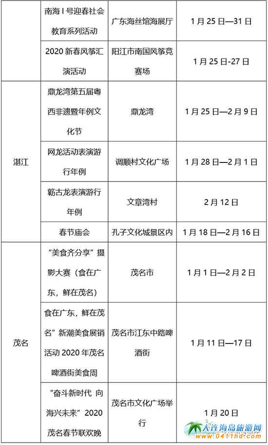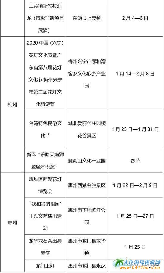 “2020請到廣東過大年”各市主要活動一覽