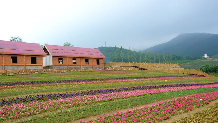 尚未開(kāi)業(yè)的大連紫云花汐薰衣草莊園中,站在1200平米的日之初廣場(chǎng)上,可以欣賞到剛剛栽種的并且已經(jīng)初現(xiàn)風(fēng)光的彩虹花田。