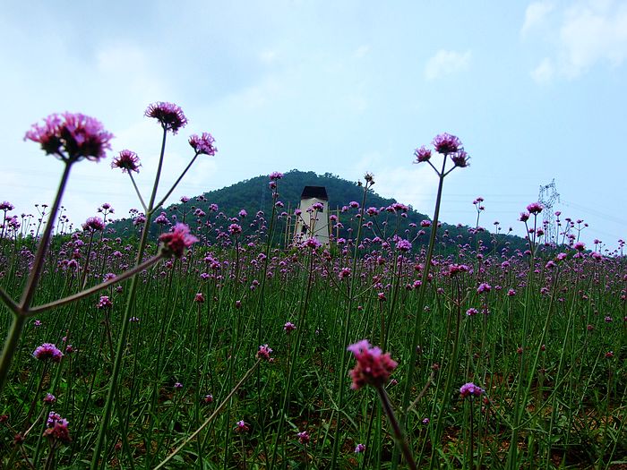 紫云花汐薰衣草圖片-紫色海洋中的風車(7)