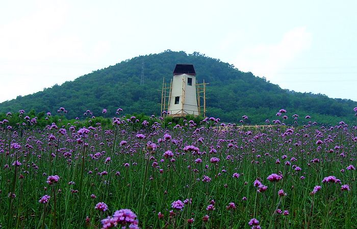 紫云花汐薰衣草圖片-紫色海洋中的風車(8)