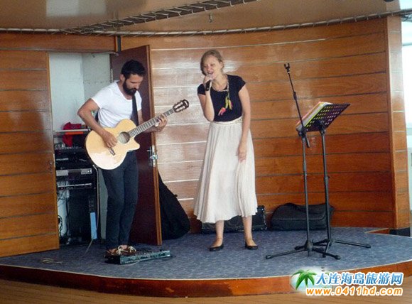 樂主要是一種精神享受,它可以是一種休閑消遣,也可以是一種聽覺視覺上的享受,以心靈享受為主。在郵輪上有二種形式的享受讓我最愜意。一是郵輪七層的露臺上,晚上可以舉辦parti ,這里有游泳池,有沙灘椅,白天躺在沙灘椅上,閉著眼睛靜靜地享受日光浴,是神仙一般的享受。只要有機會,我就會去躺一會。一是六層船頭的夢幻海劇場,除了電影外,還有各式表演,有歌曲、舞蹈、魔術表演,甚至還有游客參與的互動節目,精彩紛呈。