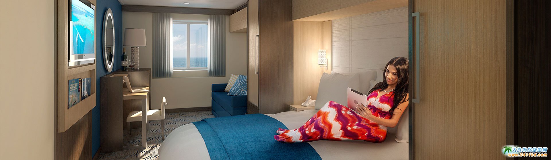 海洋量子號郵輪的住,除卻傳統的內艙、海景、陽臺、套房這幾種,它最大的亮點是即便是居住內艙,仍能欣賞到外面海上的美景,您是說怎么做到的?說出來肯定覺得很不可思議,海洋量子號郵輪在內艙房里安裝了超大的LED大屏幕,實時轉播外面海上的情況,若是晚上您覺得看累了,還可以手動關閉。小編由衷的贊嘆,海洋量子號郵輪太會玩了。
