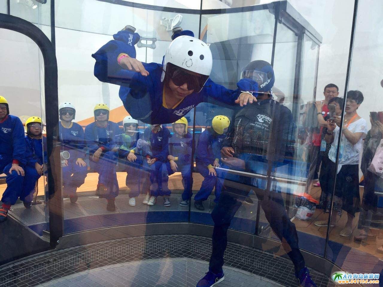 海洋量子號另一個較為出名的項目就是“甲板跳傘”,光從外側圍觀,就讓觀看的人屏住呼吸,看著特技人員在風洞里面翻騰跳躍,那感覺,棒呆!不用登月、跳傘,照樣體驗失重的奇妙感覺!(