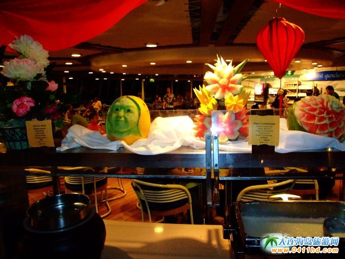 "郵輪上的午夜派對上,一頓豐盛的大餐不僅滿足了您的胃,更是愉悅了您的眼睛。完美的