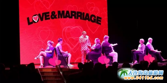 嘉年華游輪模仿經典的電視節目“The Newlywed Game”,在觀眾中選出三隊新婚夫婦,考驗他們對彼此的了解程度,采用同樣的形式,雙方各自回答同一個問題,隨后對比答案,節目上經常會有一些驢唇不對馬嘴的回答。