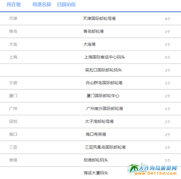 以上數據來源:2015中國郵輪發展報告,截止至2016.2